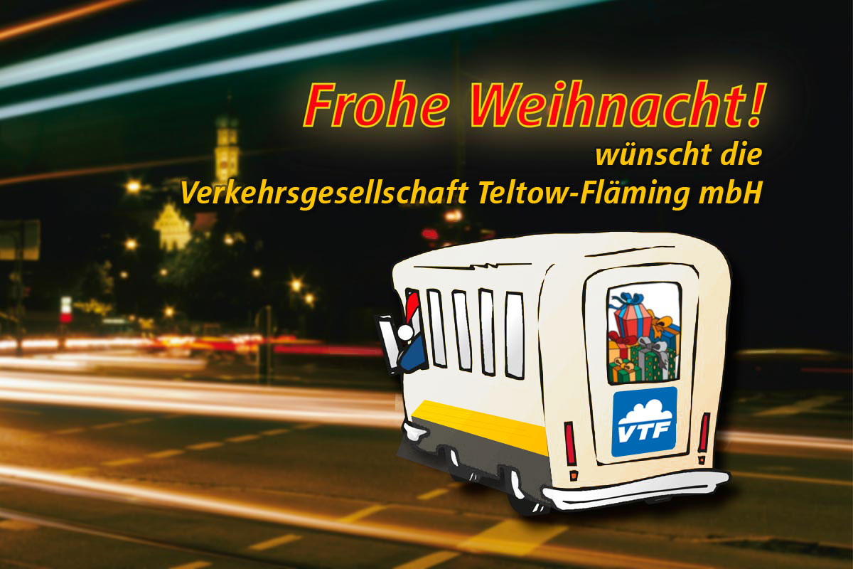 die Verkehrsgesellschaft Teltow-Fläming mbH wünscht Ihnen ein frohes Weihnachtsfest und einen guten Start in das Jahr 2026.